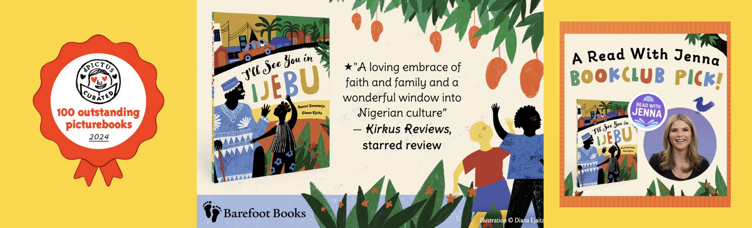 Her debut picture book is I'll See You in Ijebu, forthcoming in 2024, followed by her board book Our World: Nigeria, both with Barefoot Books.