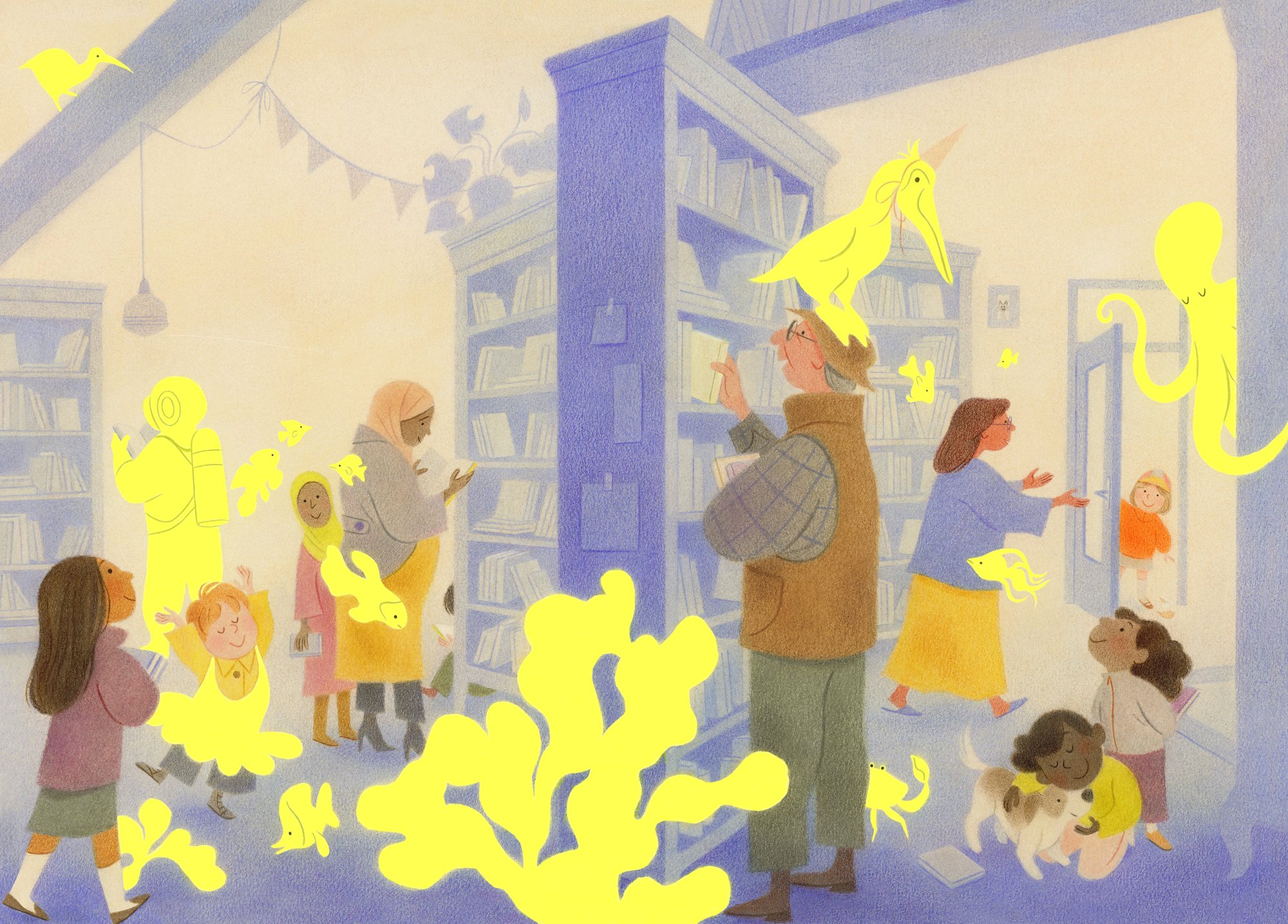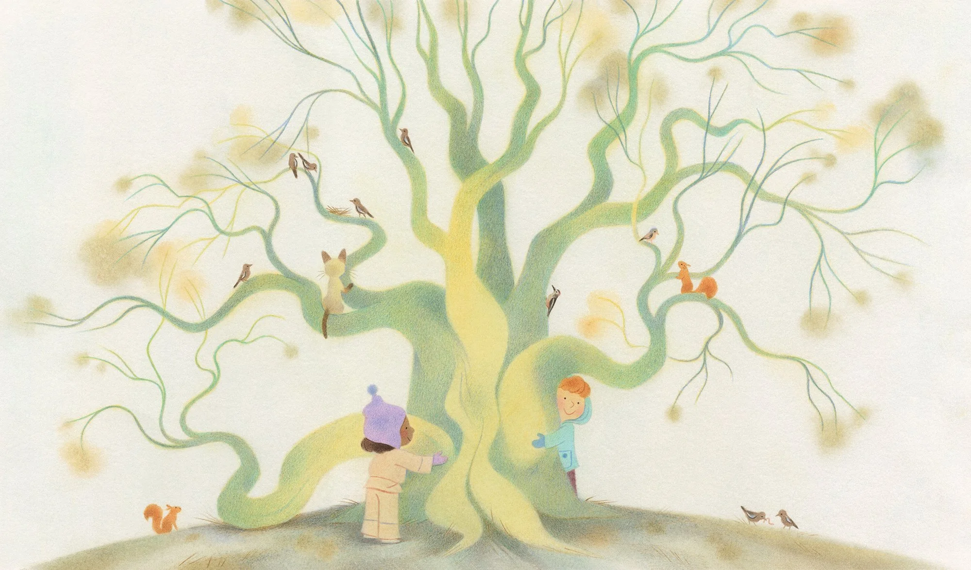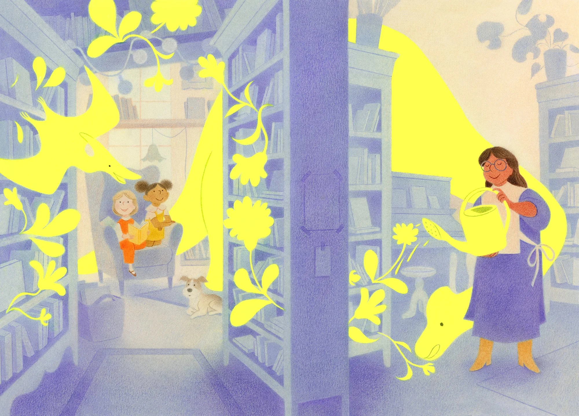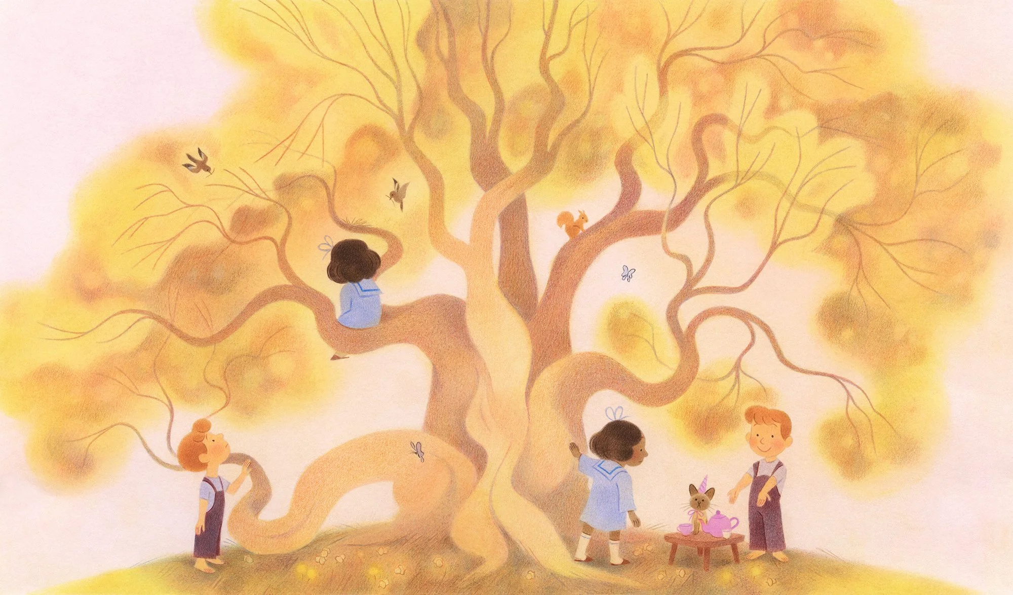 Geneviève works with traditional media, especially soft pastels and colored pencils, which she loves for their rich pigments, velvety textures, and the slow, intentional pace they require. Her illustrations focus as much on mood as on detail, often capturing moments of nostalgia, tenderness, and quiet wonder.